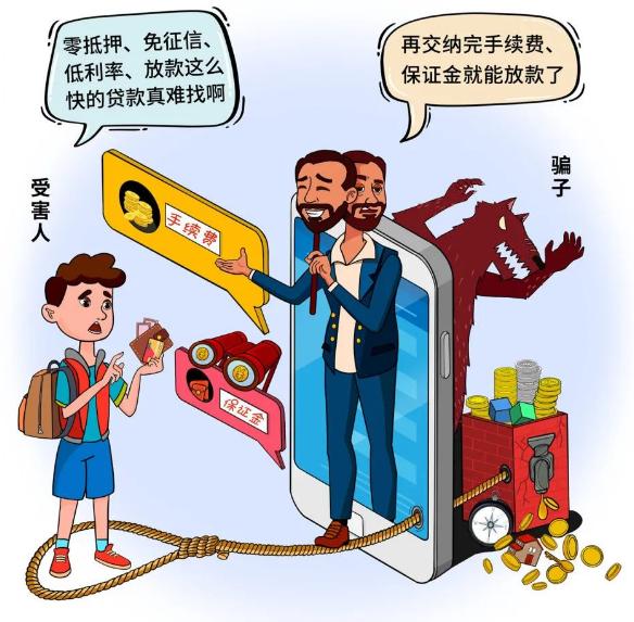 3.巧立名目,引誘打款。受害人在需要提取貸款時(shí),詐騙分子則以銀行卡輸入錯(cuò)誤、需要繳納保證金、解凍金等各種理由誘導(dǎo)受害人轉(zhuǎn)賬,導(dǎo)致受害人不僅沒有貸到款,還遭受了損失。