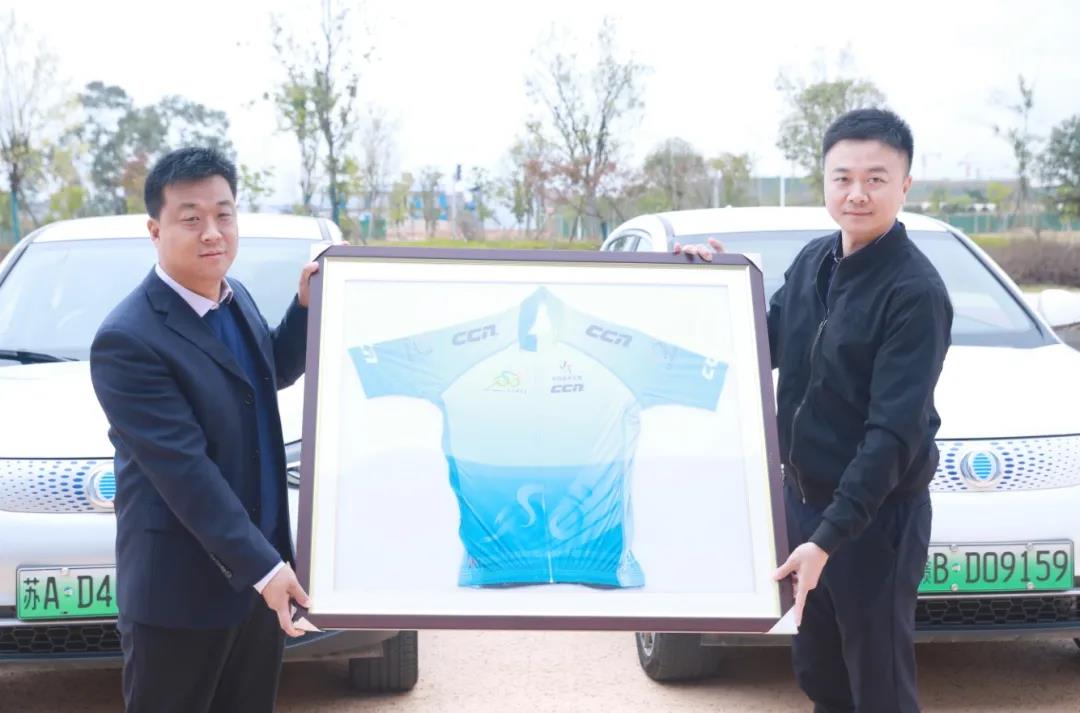 參觀后,環(huán)鄱陽湖自行車精英賽運(yùn)營方江西省體育發(fā)展有限公司董事長沈紅斌與國機(jī)智駿高級(jí)執(zhí)行副總裁趙志剛代表雙方參加了簽約儀式,就下階段的深度合作達(dá)成了戰(zhàn)略協(xié)議。國機(jī)智駿高級(jí)執(zhí)行副總裁趙志剛向江西省體育發(fā)展有限公司董事長沈紅斌交付用于賽事保障的車輛鑰匙,江西省體育發(fā)展有限公司董事長沈紅斌向國機(jī)智駿贈(zèng)與2020年環(huán)鄱陽湖自行車精英賽全套紀(jì)念獎(jiǎng)牌,江西省體育發(fā)展有限公司業(yè)務(wù)總監(jiān)陳祎煒向國機(jī)智駿贈(zèng)與2020年環(huán)鄱陽湖自行車精英賽領(lǐng)騎衫。