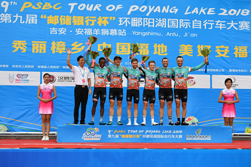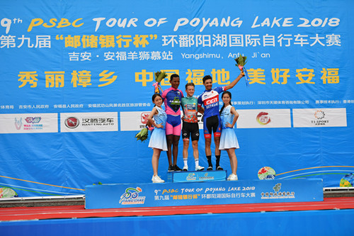 本賽段賽道全程16公里,是本屆環(huán)鄱賽設(shè)置的最短賽程。來(lái)自德國(guó)助力車(chē)隊(duì)的選手阿德內(nèi)?威廉簡(jiǎn)僅用35分38秒完成比賽,奪得了本賽段的冠軍。昨日獲得爬坡王(圓點(diǎn)冠軍衫)的厄立特里亞車(chē)隊(duì)選手耶馬內(nèi)?謝加伊表現(xiàn)勇猛獲得亞軍并且繼續(xù)保有圓點(diǎn)冠軍衫。塞爾維亞CCN梅達(dá)勒車(chē)隊(duì)選手馬爾科?帕夫利察獲得季軍。荷蘭猴城樂(lè)園車(chē)隊(duì)選手馬爾滕?德容以第八名完成比賽的成績(jī)繼續(xù)保有個(gè)人總成績(jī)(藍(lán)冠軍衫)。最佳大中華(粉紅冠軍衫)和沖刺王(橙冠軍衫)獲得者均為中國(guó)熊貓CCN車(chē)隊(duì)選手彭源堂,這也是他連續(xù)三站同時(shí)穿上兩件領(lǐng)騎衫。