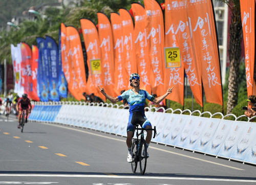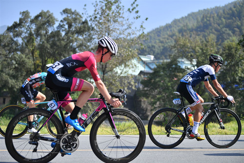 本賽段全程87.9公里,繼續(xù)沿用以往的經(jīng)典三圈盤(pán)山公路設(shè)計(jì),賽道中海拔落差最高可達(dá)600米,蜿蜒盤(pán)旋的山路對(duì)選手的爬坡能力和體力都是非常大的考驗(yàn)。上午9點(diǎn)準(zhǔn)時(shí)發(fā)車(chē)后,運(yùn)動(dòng)員開(kāi)始了兩個(gè)多小時(shí)的艱難騎行,中途不斷有選手因?yàn)楦鞣N原因放棄比賽,最終綜合實(shí)力強(qiáng)勁的美國(guó)瑪吉斯野生世代洲際車(chē)隊(duì)選手塞繆爾?約瑟?布阿德曼以絕對(duì)優(yōu)勢(shì)率先沖過(guò)終點(diǎn),收獲本站冠軍,捷克布拉格斯巴達(dá)車(chē)隊(duì)選手弗朗齊歇克?漢沙和澳大利亞新南威爾士車(chē)隊(duì)選手馬太?卡倫?迪納姆隨后沖線,分獲第二、三名。四色領(lǐng)騎衫與前兩賽段相比發(fā)生變化:本站冠軍――美國(guó)瑪吉斯野生世代洲際車(chē)隊(duì)選手塞繆爾?約瑟?布阿德曼接管了個(gè)人總成績(jī)(藍(lán)冠軍衫);法國(guó)國(guó)防車(chē)隊(duì)選手朱利安?阿馬多利勇奪登山王(圓點(diǎn)冠軍衫)。而中國(guó)江西新力物業(yè)車(chē)隊(duì)選手彭源堂和美國(guó)瑪吉斯野生世代洲際車(chē)隊(duì)選手肯特?貝爾納迪尼?羅斯憑借累計(jì)的優(yōu)勢(shì)和穩(wěn)定的發(fā)揮繼續(xù)將最佳大中華(粉紅冠軍衫)和沖刺王(橙冠軍衫)留在了自己身上。